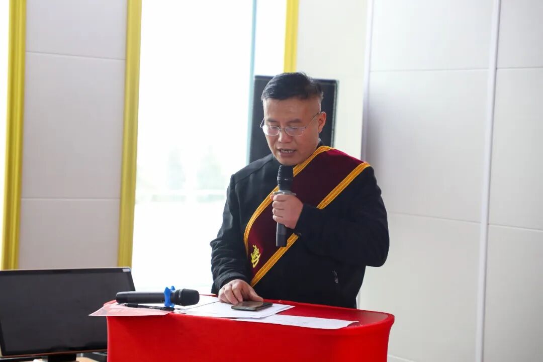 敬业骨干员工代表丁相鹏,主要讲述“去年完成多项重点工程,实现产值超6000万元、回款4000余万元,但也存在安全、质量、现场管理不足。2026年工程部并入生产管理部,将围绕公司方针,严控成本、固老拓新、打造标杆、强化协同、落实利益分享,真抓实干、补齐短板,全力完成年度任务”。