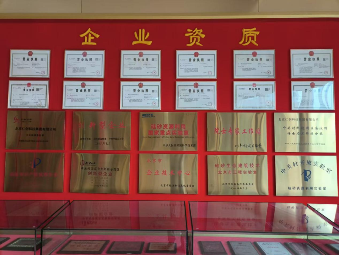 仁创科技集团工作人员,首先向各位老领导及现任领导介绍了集团多年来的成绩,集中展示了各类发明专利证书、创新成果证书,并详细介绍了 “硅砂资源利用国家重点实验室” 等国家级科研平台与企业资质。系统呈现了仁创科技集团在技术创新、产业突破、行业引领等方面取得的重大荣誉与坚实积淀,充分展现了集团深耕主业、持续创新的实力与风采。